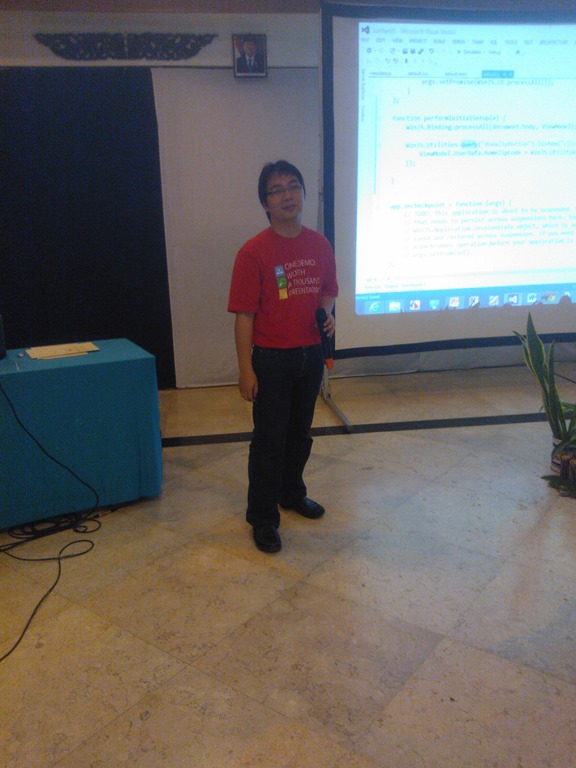 Pada acara tersebut Bapak Erick Kurniawan berkesempatan untuk membawakan materi tentang Pengembangan aplikasi Windows 8 menggunakan HTML5 dan Javascript. Adapun detail materi yang dibawakan adalah :