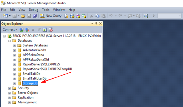 Sebagai contoh pada tutorial kali ini kita akan mengeksport database dengan nama StorageDb ke SQL Azure.