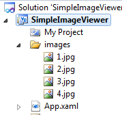 • Klik kanan pada folder images – pilih Add – Existing Item – tambahkan 4 file image, kemudian ubah nama file image menjadi berurutan untuk memudahkan pemanggilan.