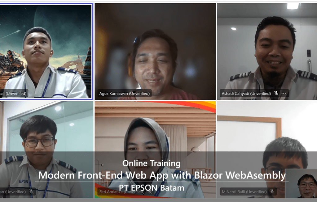 Pada tanggal 11-15 September 2021 telah dilangsungkan online training dengan judul Designing & Building Enterprise Blazor Application. Training ini diikuti oleh 11 orang peserta dari PT EPSON Batam.